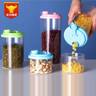 廚房五谷雜糧收納盒 翻蓋 密封罐塑料透明食品干貨有蓋儲物罐