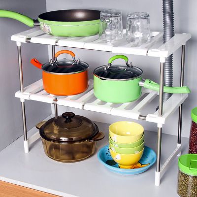 多功能可伸縮下水槽置物儲物架 不銹鋼塑料廚房雙層收納
