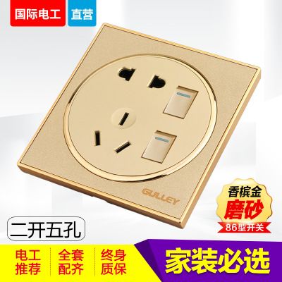 86型家裝圓形磨砂金二開五孔單控雙控開關面板