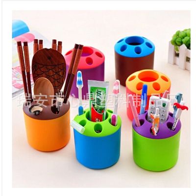 大號糖果色牙刷架 多用途情侶牙膏牙刷座桌面收納桶 多孔筆筒10*9
