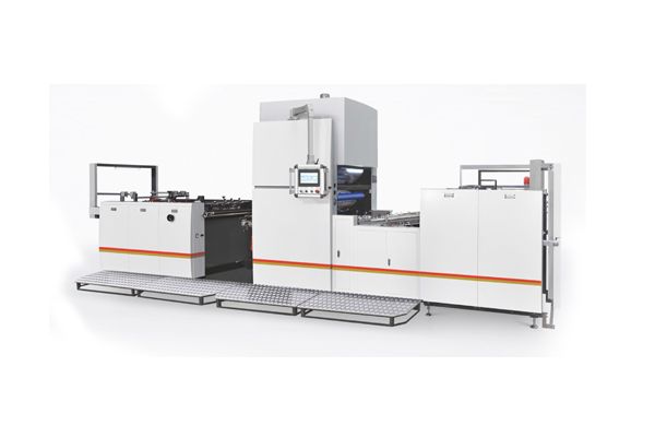 先于薄膜上涂上水性膠水后經過大干噪輪進行烘干,同時自動送紙機將紙張送至貼合主機,采用貼臺輪加熱及加壓方式將已上膠的 OpP 薄膜貼合于紙張表面,大干燥輪和貼合采用熱水循環系統。加熱快控溫穩定準確,貼合好的成品可選擇卷取成狀或圓盤式切刀將膠膜切出缺口,經過特殊設計拉斷輪拉斷后。選擇人工收紙或自動收紙.