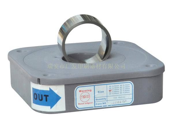 適用領域:凹版包裝印刷、凹版出版印刷、柔版印刷、柔版UV膠印上光、裝飾材料印刷、復合、燙金、電化鋁、印花、熱轉印、厚紙、壁紙、花紙、木紋、皮革等涂布印刷。 參數: 長度:100米/卷或定制 厚度:0.15/0.2mm或定制 寬度:30-60mm 直線性:每3000mm長度內直線性偏差小于0.6mm 硬度:585HV±15HV 適用機速:≤200M/min |
