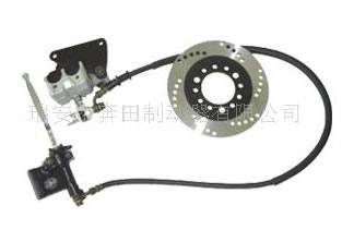 | 型號:BT2G7 工作壓力:6.9Mpa 制動泵缸徑:φ12.7mm 制動鉗缸徑:2 x φ25mm 安裝位置:前剎右側 安裝板孔距:84mm 油管長度:1000mm 理論制動力矩:406N.m 外徑:φ180mm 內徑:φ58mm 厚度:4mm 安裝參數:孔距φ80mm 孔徑φ10.5mm 底面平行高度:4mm 制動有效半徑:75mm |