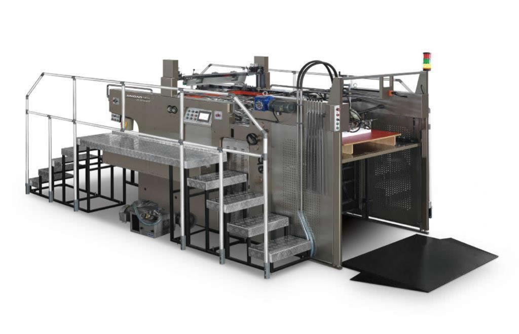 JB-1050AGT全自動停回轉式網版印刷機是我公司引進了先進的設計和生產技術,吸收了成熟的膠印機技術的,自主創新,并擁有專利技術的一款機型,其主要針對紙品包裝領域的網版印刷。該機采用經典的停回轉技術,最高運轉速度達到4000張/小時;同時創新型采用了不停機飛達及不停機收紙技術,改變了以往全自動網印機必須停機上紙和停機收紙的操作模式,消除了全自動網印機在上紙和出紙上的時間浪費,整機印刷利用率提高了30%以上,本機適用于陶瓷及玻璃花紙、廣告、包裝印刷、標牌、紡織轉移、電子等行業的網版印刷。(實際裝紙高度可達1.3米)