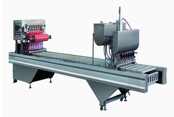 該卷膜系列可生產(chǎn)液體 膏體 顆粒等產(chǎn)品的定量灌裝與封口,自動(dòng)落杯,灌裝、封口、日期打印、切邊、出杯一整個(gè)流程運(yùn)作。
