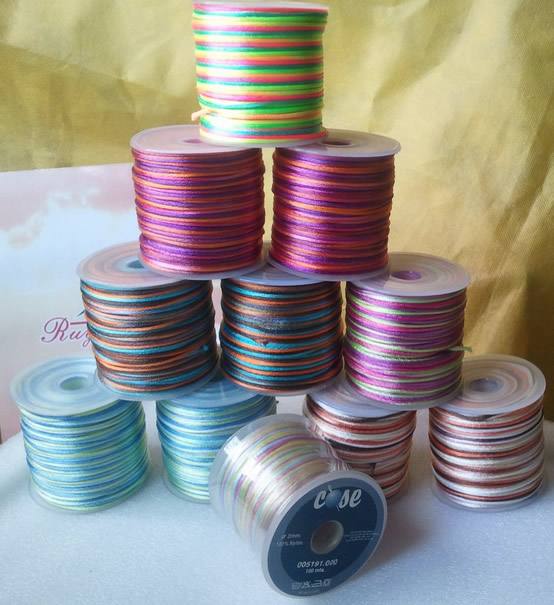 瑞安市如意織帶有限公司生產尼龍七彩繩規格有1.5mm, 2.0mm, 3.0mm, ,材料有滌綸和錦綸兩種,產品廣泛用于編織工藝品,飾品及服裝和鞋帽等配套產品,包裝有50米,72碼,100米,144碼,200碼,我們年產中國結繩貳仟萬米,基本出口到美洲,歐洲和中東,歡迎各出口公司訂購。