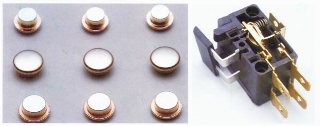 產品概述:三復合鉚釘觸點采用冷鐓加工而成,用于雙面接觸銀合金整體鉚釘型觸點,在不影響使用性能的情況下,可節約30%-70%的材料成本。 主要材料:銀、銀氧化鎘,細晶銀、銀錦、銀氧化錫、銀氧化錫氧化煙、銀銅、 銀氧化鋅 等。 主要應用:家用電器、接觸器、微動開關、按鈕開關、墻壁開關。 |