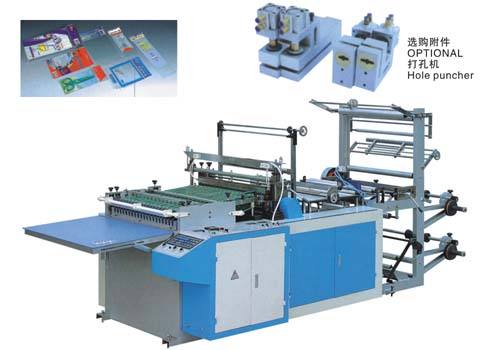 特點: 本機適用于BOPP、OPP熱收縮膜等材料的熱合熱封切,是制作襪子袋、毛巾袋、面包袋、飾品袋的理想設備,本機肯有電腦定長、光電跟蹤,性能穩定(鑄鐵結構),速度快等特點,具備自動上膠、自動打孔、熱花邊等功能。