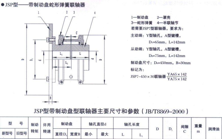 JSP帶制動盤型蛇形彈簧聯軸器