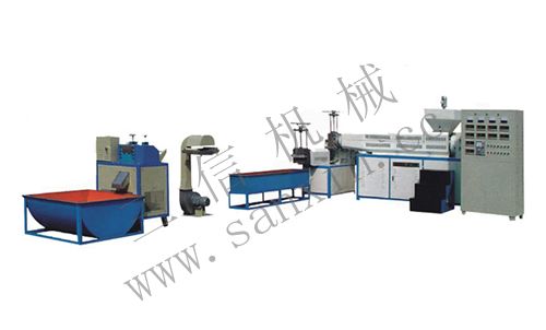 本機組可將經過清洗、破碎的廢舊聚乙烯、聚丙烯塑料加工成粒子,作為