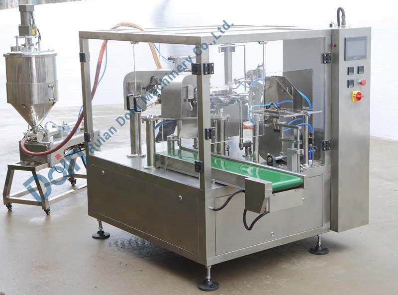 | 適用范圍: 這套設備由預制袋全自動包裝機與液體、醬體灌裝機配套而成,主要適用于果汁、番茄醬、調味醬、辣椒醬、花生醬、洗手液、洗滌劑等液體、醬體物料的自動計量包裝。 可選配置: 1.液體灌裝機2.醬體灌裝機 3.保溫儲料機 4.攪拌機 5.重量選別稱 6.金屬檢測機 7.成品輸送機 8.下開袋裝置 主要性能和特點: 1、包裝范圍廣泛:適用各種狀態(tài)、性質的液醬體;2、操作方便:采用PLC控制,人機界面操作系統(tǒng),使操作直觀方便; 3、調節(jié)方便:更換品種約在十分鐘以內完成。 4、適用不同類型的包裝袋; 5、完善的預防系統(tǒng),保障成品率,不浪費袋子和物料; 6、機器包裝部位采用不銹鋼材料,保證物料的衛(wèi)生與安全,符合GMP標準; 7、自動化程度高:在稱量、包裝全過程實現(xiàn)無人化,出現(xiàn)故障自動報警; 8、部分采用進口工程塑料,無需加油,減少對材料的污染; 9、采用無油真空泵,避免污染生產(chǎn)環(huán)境; 10、采用防水設計可以用水沖洗,降低清洗難度,提高機器使用壽命。 主要技術參數(shù):